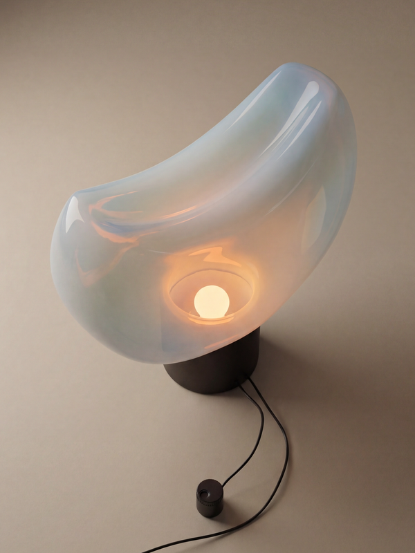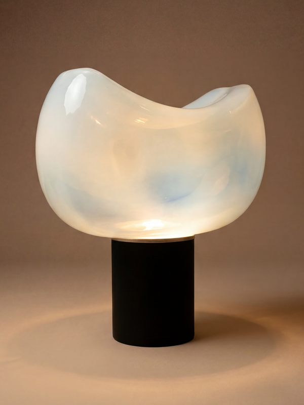 Lampe « Aghia » dessinée par Roberto Pamio pour l’éditeur Leucos, emblématique du design italien des années 1970. Une pièce où la pureté formelle rencontre une approche sensible de la lumière. Son diffuseur en verre soufflé, délicatement opalin, enveloppe la source lumineuse pour créer une ambiance douce et homogène. La base, sobre et équilibrée, souligne l’élégance minimaliste propre au travail de Pamio. À la fois sculpturale et fonctionnelle, cette lampe diffuse une lumière chaleureuse, idéale pour sublimer un intérieur contemporain ou dialoguer avec des pièces plus classiques.