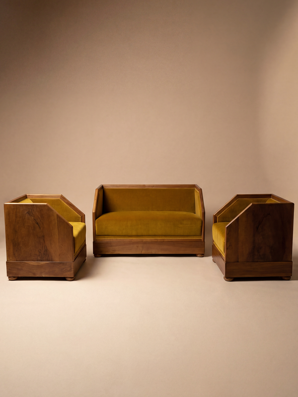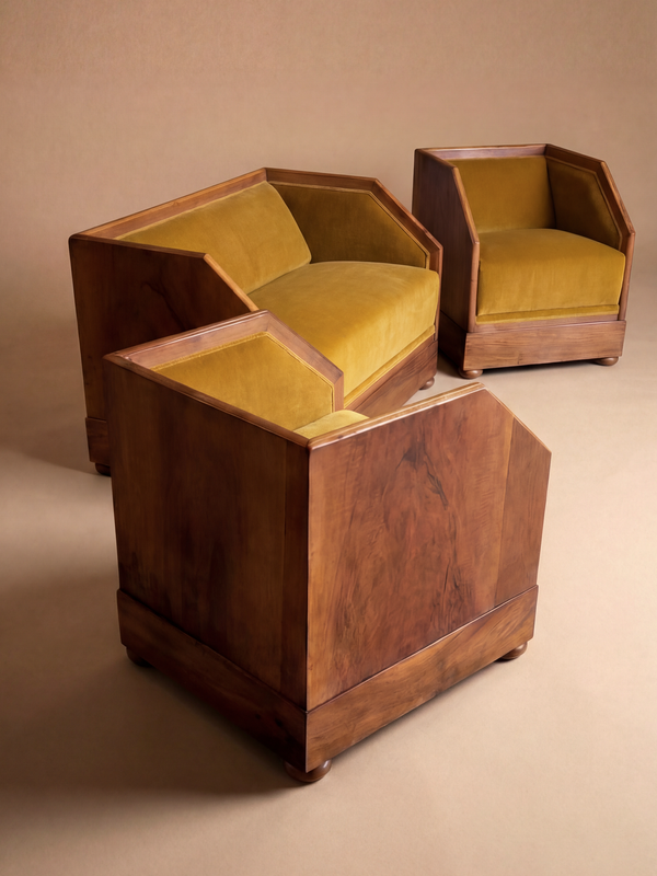 Cubist Set of Two Armchairs and Sofa – France, 1920