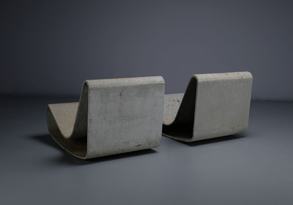 Step into the world of modern design with the Loop Chairs by renowned Swiss architect Willy Guhl. These chairs are a true testament to Guhl's artistic vision, combining minimalist aesthetics with functionality. One of the defining features of the Loop Chairs is their striking form. The looped design is a masterpiece of simplicity, creating an eye-catching visual appeal that commands attention. The chairs are made from fiber cement, a durable and eco-friendly material that adds to their unique charm. The smooth curves and clean lines of the chairs create a sense of fluidity, making them a perfect fit for contemporary or minimalist spaces. Guhl's attention to detail is evident in the comfort of the chairs. Despite their minimalist design, the Loop Chairs provide ample support and ergonomic seating. The curved shape of the loop offers excellent lumbar support, allowing for prolonged sitting without sacrificing comfort. The versatility of the Loop Chairs is also noteworthy. They can be used as standalone statement pieces or as part of a larger seating arrangement. Their neutral color make them easy to integrate into various design schemes, from modern interiors to outdoor spaces, adding a touch of sophistication and elegance. As a standout piece in the Modernist Gallery, the Loop Chairs by Willy Guhl are a true work of art that elevates any space. With their sleek design, durability, comfort, and versatility, these chairs are a must-have for design enthusiasts who appreciate the beauty of functional art.