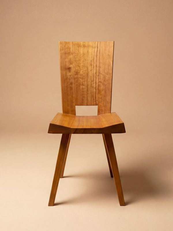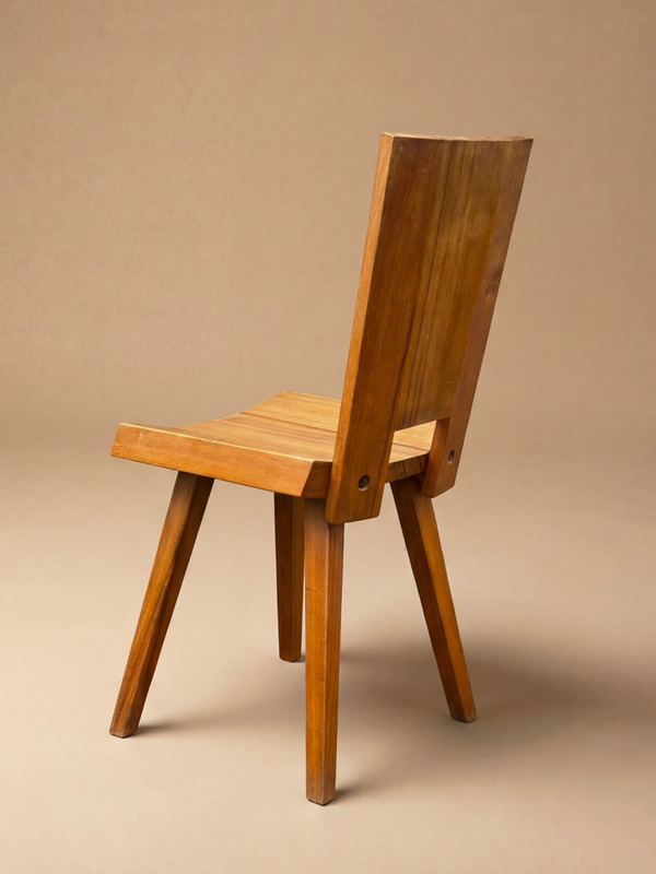 This set of six chairs by Ebénisterie Seltz reflects the constructive rigor and functional clarity of post-war French furniture. The design is straightforward and well balanced, favoring proportion and structure over decoration. Crafted in solid ash, the chairs display precise joinery and confidently worked volumes. The gently curved backrest provides natural support, while the thick, sculpted seat gives the pieces a strong architectural presence. Ideal around a dining table or in a modernist interior, these chairs combine restrained design with the warm grain of ash. A coherent and enduring ensemble, representative of Seltz’s disciplined craftsmanship.