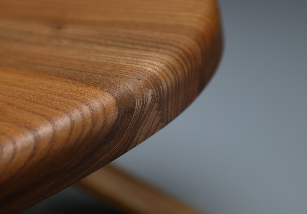 Introducing Pierre Chapo's 1973 Chairs, a masterpiece of minimalist design and craftsmanship. These chairs represent the pinnacle of a furniture collection that marries simplicity with raw materials, resulting in a truly iconic creation. Crafted from solid elm, the chairs feature a sturdy base, providing both stability and a distinctive aesthetic. One of the details that sets these chairs apart is the offset backrest, a captivating design element that immediately draws the eye and distinguishes them as truly unique. This offset backrest showcases Chapo's talent for originality and artistic flair, seamlessly aligning with the minimalist ethos. These chairs are a testament to Chapo's ability to blend bold forms into functional art pieces. The polygonal shaped seat not only enhances the visual appeal but also ensures comfort and ergonomic support, making these chairs as practical as they are beautiful. However, the most characteristic feature of these models is their crossed legs. Adding to their allure, this distinctive base is skillfully crafted to create a sense of movement and balance. These crossed legs not only enhance the chair's stability but also contribute to its overall elegance. Incorporate these chairs into your space to add a touch of timeless elegance and pay homage to the genius of their creator. Whether in your dining room, office, or any area that demands sophistication, these chairs will elevate your surroundings and earn admiration from all who encounter them. Experience the artistry of Pierre Chapo's 1973 Chairs and own a piece of design history that continues to inspire generations.