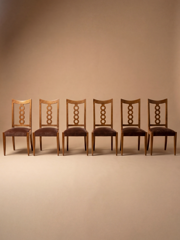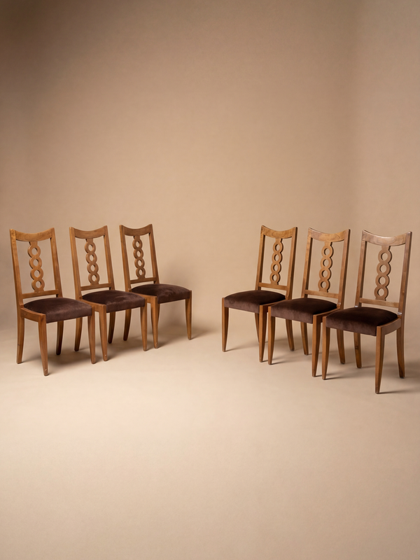 Set of 6 Walnut Chairs by Victor Courtray